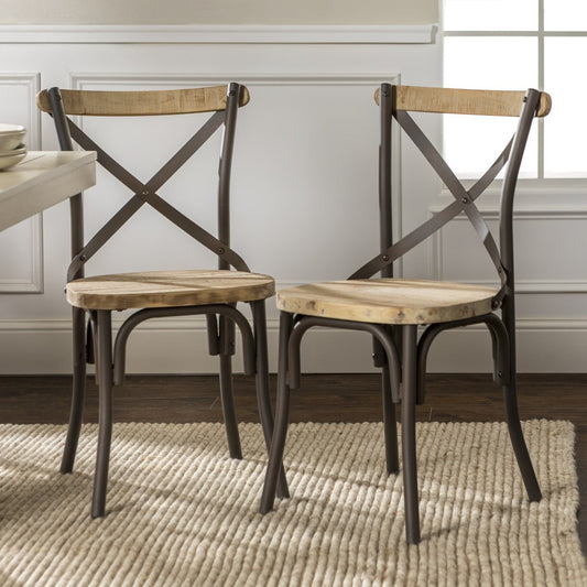 Industrial Slat Back Counter Stools, Set of 2 - Rustic Oak