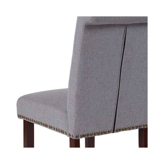 Light Gray Fabric Parsons Chair with Rolled Back, Accent Nail Trim and Walnut Finish