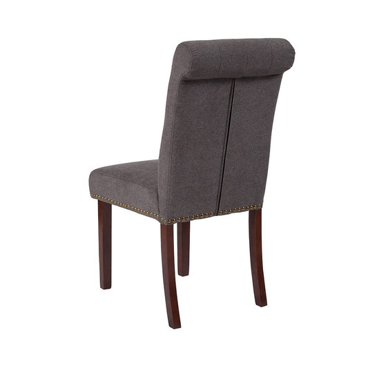 Dark Gray Fabric Parsons Chair with Rolled Back, Accent Nail Trim and Walnut Finish