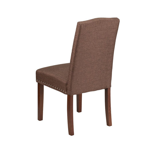 Brown Fabric Parsons Chair with Silver Accent Nail Trim