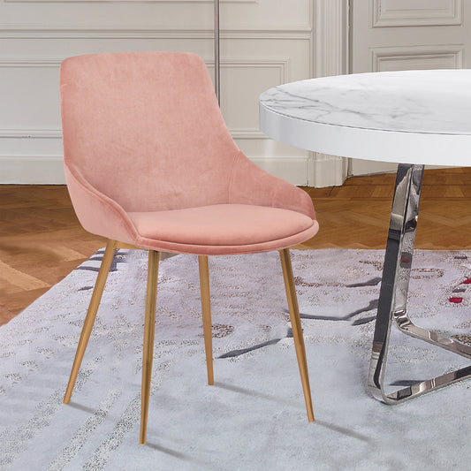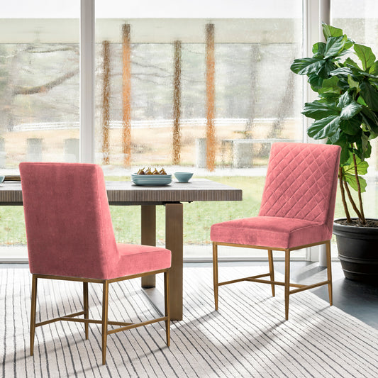 Gigi Pink Velvet Dining Room Chair with Gold Metal Legs - Set of 2