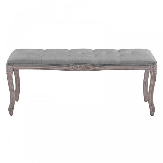 Regal Vintage French Upholstered Fabric Bench, Light Gray
