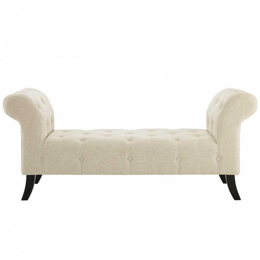 Evince Button Tufted Accent Upholstered Fabric Bench, Beige