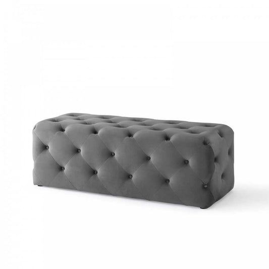 Amour 48" Tufted Button Entryway Performance Velvet Bench, Gray