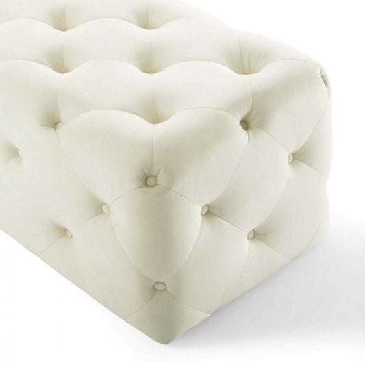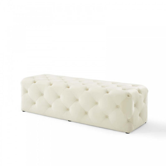 Amour 60" Tufted Button Entryway Performance Velvet Bench, Ivory