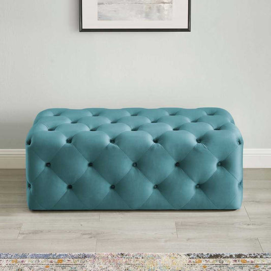 Amour 48" Tufted Button Entryway Performance Velvet Bench, Sea Blue