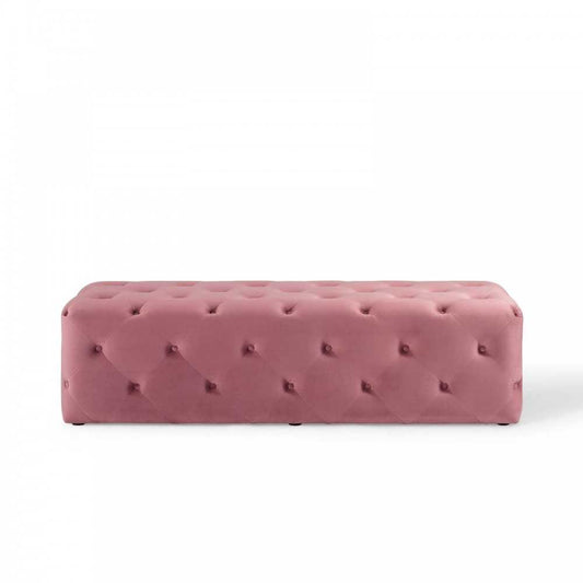 Amour 60" Tufted Button Entryway Performance Velvet Bench, Dusty Rose