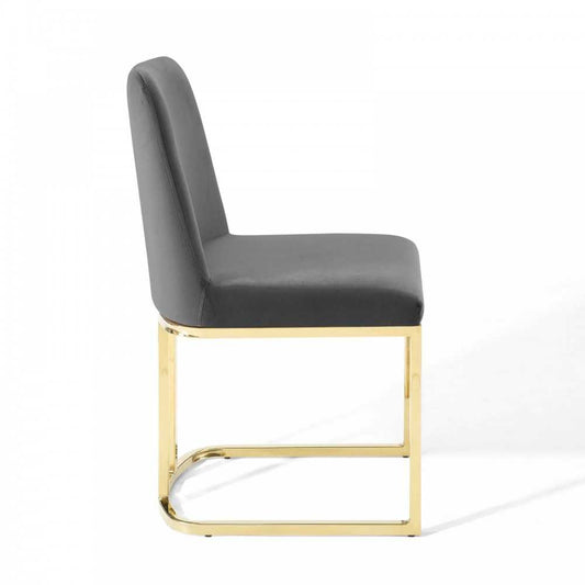 Amplify Sled Base Performance Velvet Dining Side Chair, Gold Gray