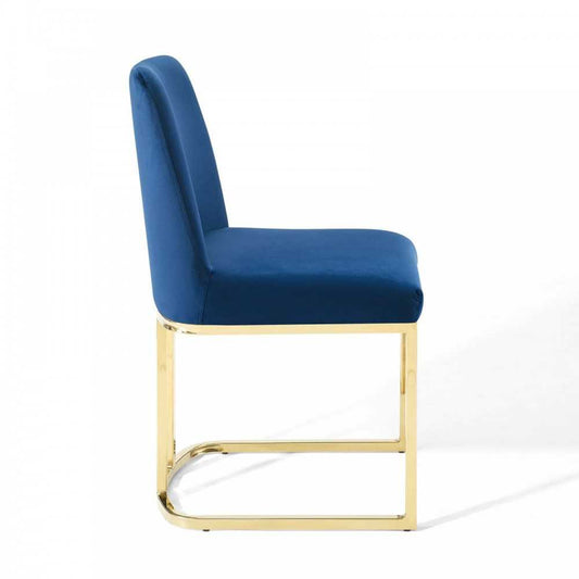 Amplify Sled Base Performance Velvet Dining Side Chair, Gold Navy