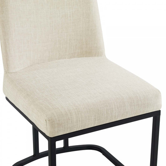 Amplify Sled Base Upholstered Fabric Dining Side Chair, Black Beige