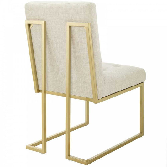 Privy Gold Stainless Steel Upholstered Fabric Dining Accent Chair Set of 2, Gold Beige