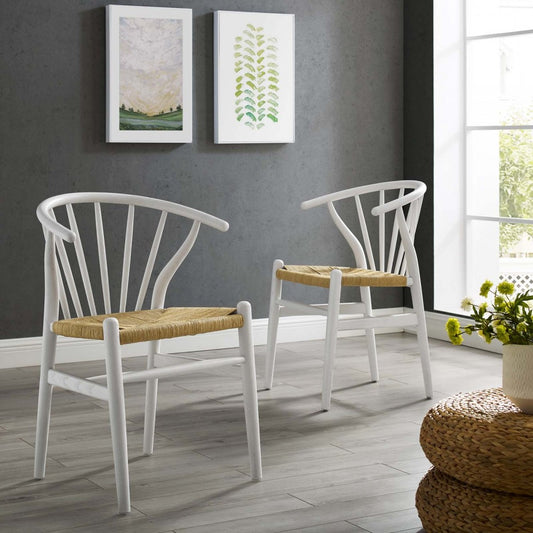 Flourish Spindle Wood Dining Side Chair Set of 2, White