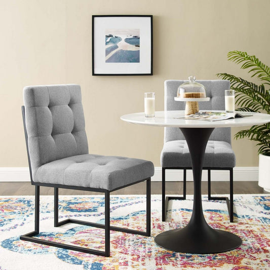 Privy Black Stainless Steel Upholstered Fabric Dining Chair Set of 2, Black Light Gray