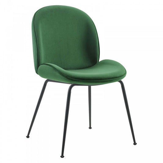 Scoop Black Powder Coated Steel Leg Performance Velvet Dining Chairs - Set of 2, Emerald