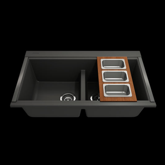 Prep Board Set for Workstation Sinks with 3 Round Stainless Steel Bowls, Mahogany, M