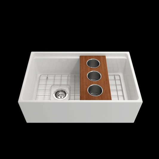 Prep Board Set for Workstation Sinks with 3 Round Stainless Steel Bowls, Mahogany, L