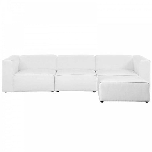Mingle 4 Piece Upholstered Fabric Sectional Sofa Set, White, EEI-2831-WHI