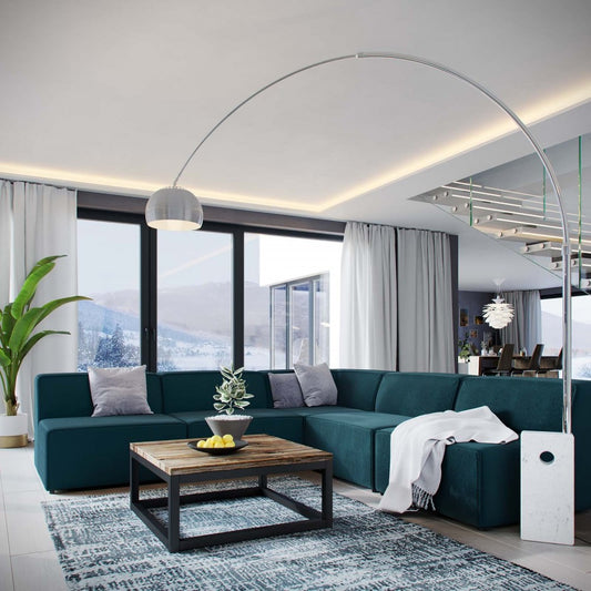 Mingle 5 Piece Upholstered Fabric Armless Sectional Sofa Set, Teal