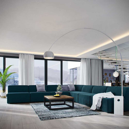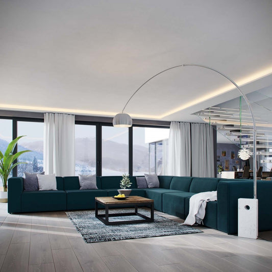 Mingle 7 Piece Upholstered Fabric Sectional Sofa Set, Teal, EEI-2841-TEA