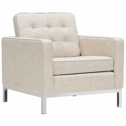 Loft 3 Piece Upholstered Fabric Sofa and Armchair Set, Beige