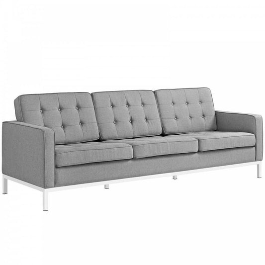 Loft 3 Piece Upholstered Fabric Sofa Loveseat and Armchair Set, Light Gray