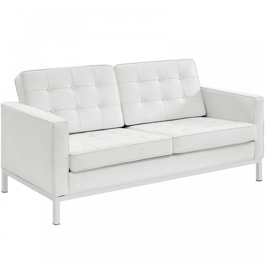 Loft 2 Piece Leather Sofa and Loveseat Set, Cream White