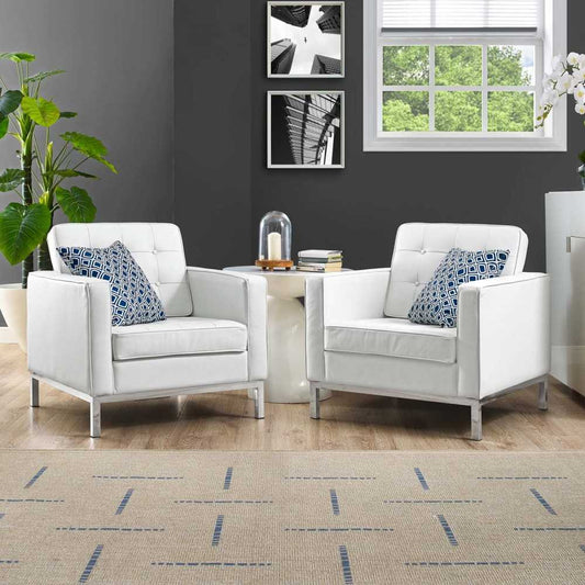 Loft 2 Piece Leather Armchair Set, White, EEI-3103-WHI-SET