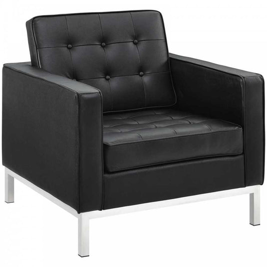 Loft 2 Piece Leather Sofa and Armchair Set, White, EEI-3099-BLK-SET