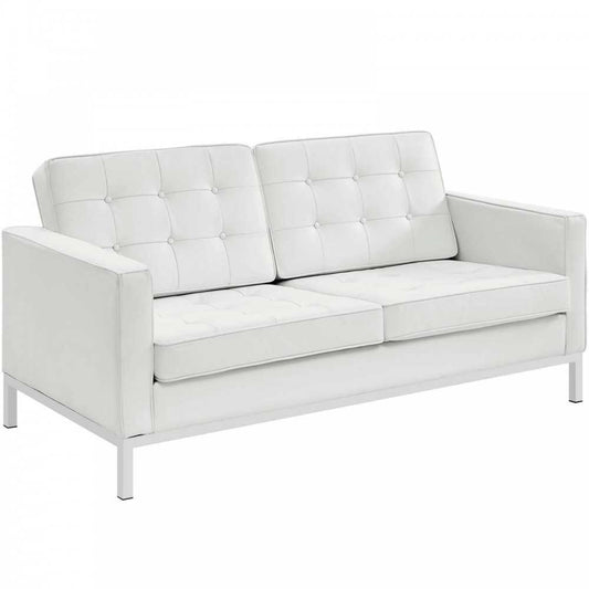 Loft 2 Piece Leather Loveseat and Armchair Set, White, EEI-3100-BLK-SET