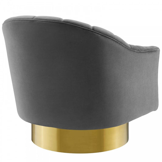 Buoyant Vertical Channel Tufted Accent Lounge Performance Velvet Swivel Chair, Gray