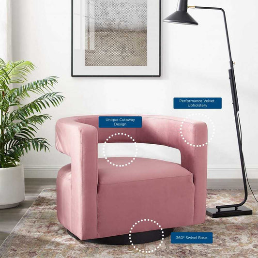 Spin Cutaway Performance Velvet Swivel Armchair, Dusty Rose
