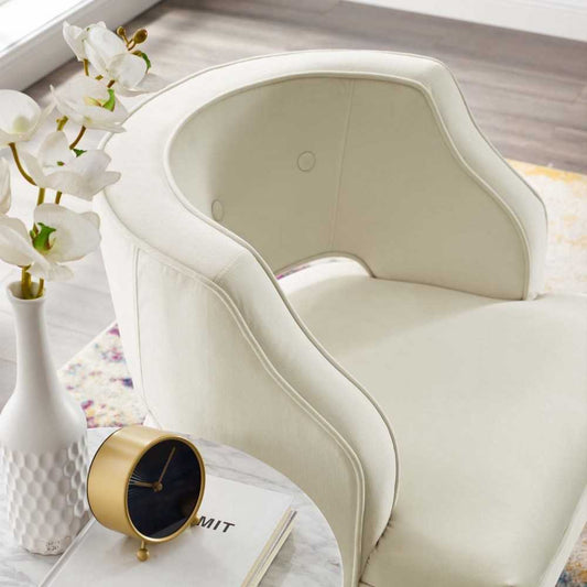 Traipse Button Tufted Open Back Performance Velvet Armchair, Ivory