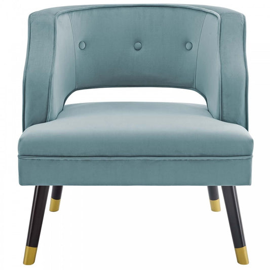 Traipse Button Tufted Open Back Performance Velvet Armchair, Light Blue