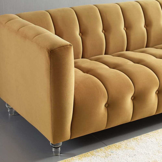 Mesmer Channel Tufted Button Performance Velvet Sofa, Cognac