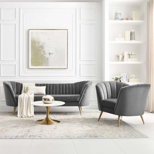 Opportunity Performance Velvet Sofa and Armchair Set, Gray