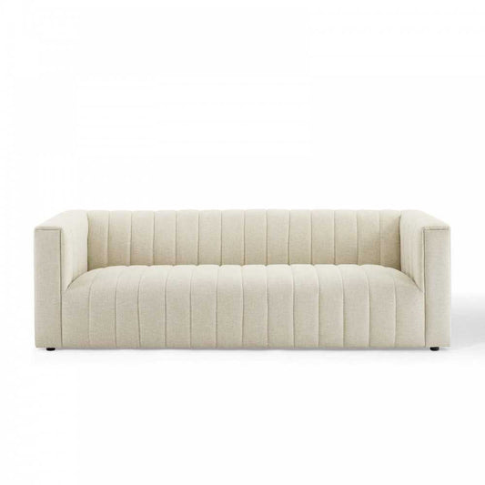 Reflection Channel Tufted Upholstered Fabric Sofa, Beige