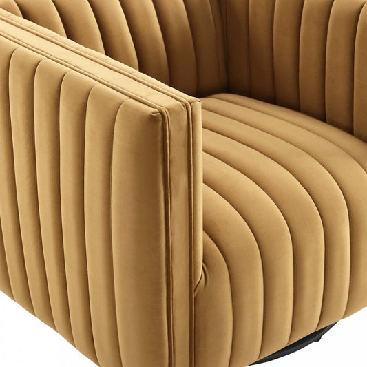 Conjure Channel Tufted Performance Velvet Swivel Armchair, Cognac
