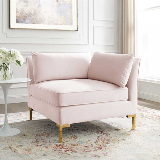 Ardent Performance Velvet Sectional Sofa Corner Chair, Pink