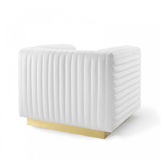 Charisma Channel Tufted Performance Velvet Accent Armchair, White