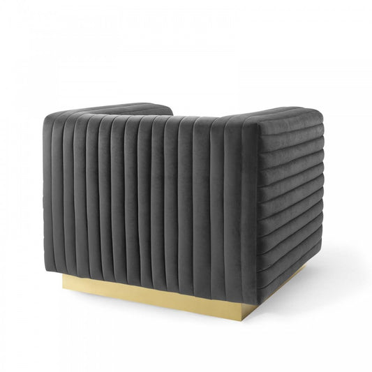 Charisma Channel Tufted Performance Velvet Accent Armchair, Charcoal