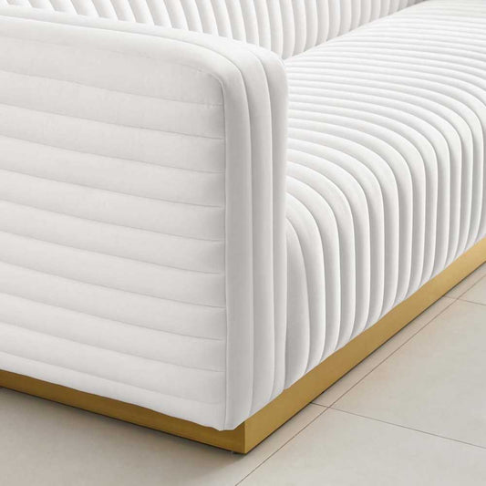Charisma Channel Tufted Performance Velvet Living Room Sofa, White