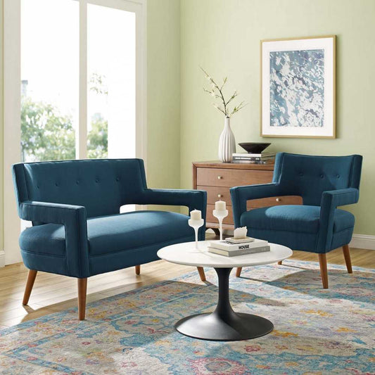 Sheer Upholstered Fabric Loveseat and Armchair Set, Azure