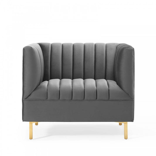 Shift Channel Tufted Performance Velvet Armchair, Gray