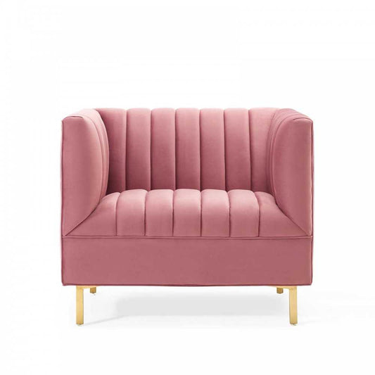 Sanguine Vertical Channel Tufted Upholstered Performance Velvet Sofa and Armchair Set, Dusty Rose