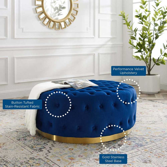 Ensconce Tufted Performance Velvet Round Ottoman, Navy
