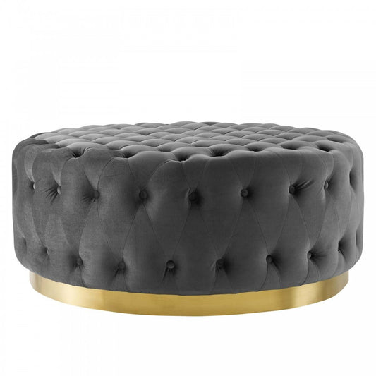 Ensconce Tufted Performance Velvet Round Ottoman, Gray