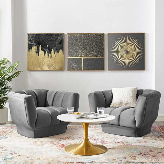 Entertain Vertical Channel Tufted Performance Velvet Armchair Set of 2, Gray