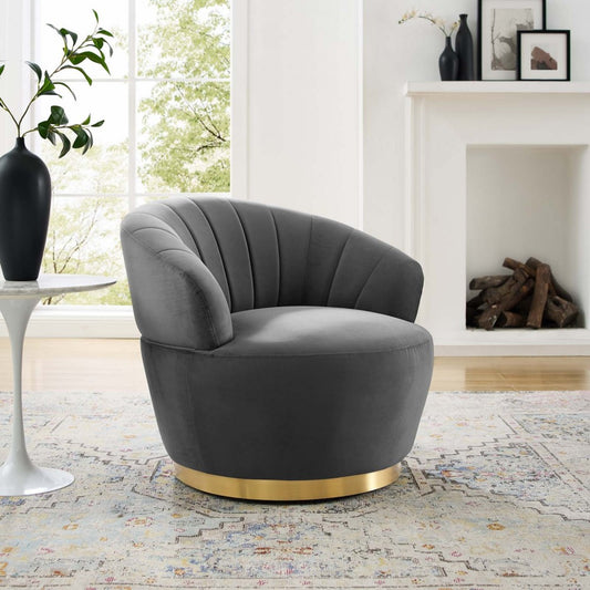 Billow Tufted Performance Velvet Swivel Chair, Gray