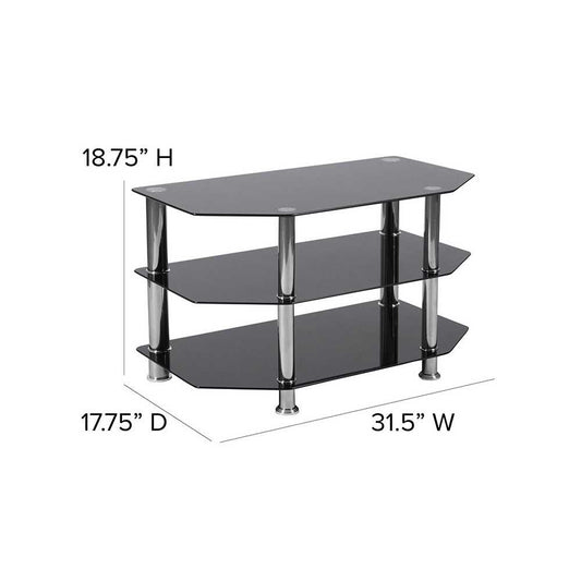 North Beach Black Glass TV Stand with Stainless Steel Metal Frame