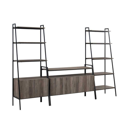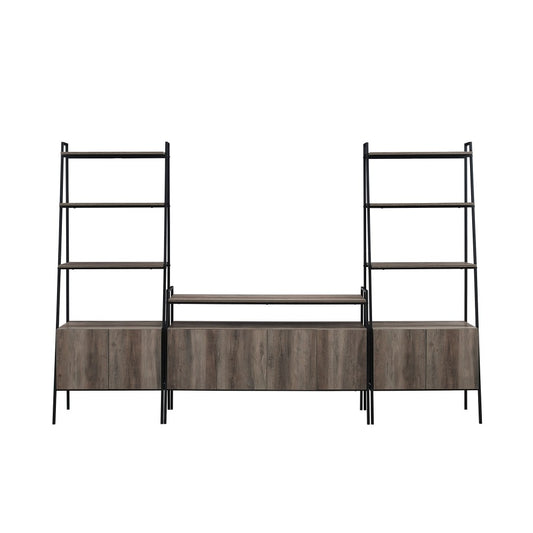 3-Piece Ladder Shelf Storage Entertainment Wall - Gray Wash